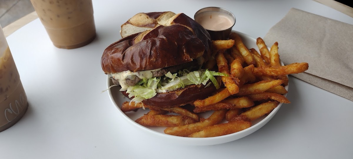 For lunch, the Bloomm Burger is a showstopper — a juicy Angus beef patty on a signature pretzel bun, complemented by house-made whole grain Dijonaise and crispy lettuce, all served with a side of battered fries. It’s hearty, delicious, and a great option for those who appreciate a comforting meal. Additionally, the Fried Chicken Sandwich and Market Salad are beloved choices, ensuring that there's something for everyone.